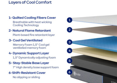 - 1.5″ gel-infused ventilated memory foam layer for cooling comfort.