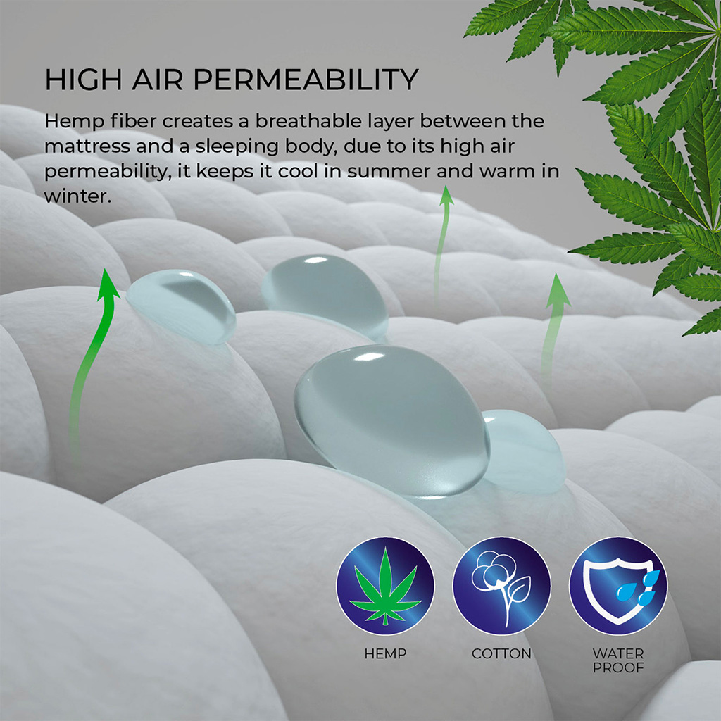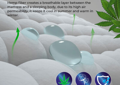 Hemp Mattress Protector includes tightly woven, thin and brushed fabric and fillings. So it is exceptionally soft, breathable and comfortable. Sustainable Hemp; thanks to its unique structure, it needs ¼ less water when produced compared to other natural fibers. It has a structure that is 4 times more durable than cotton fiber. Materials are clean. Made for sensitive skin.