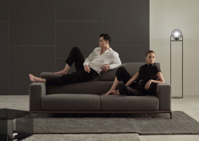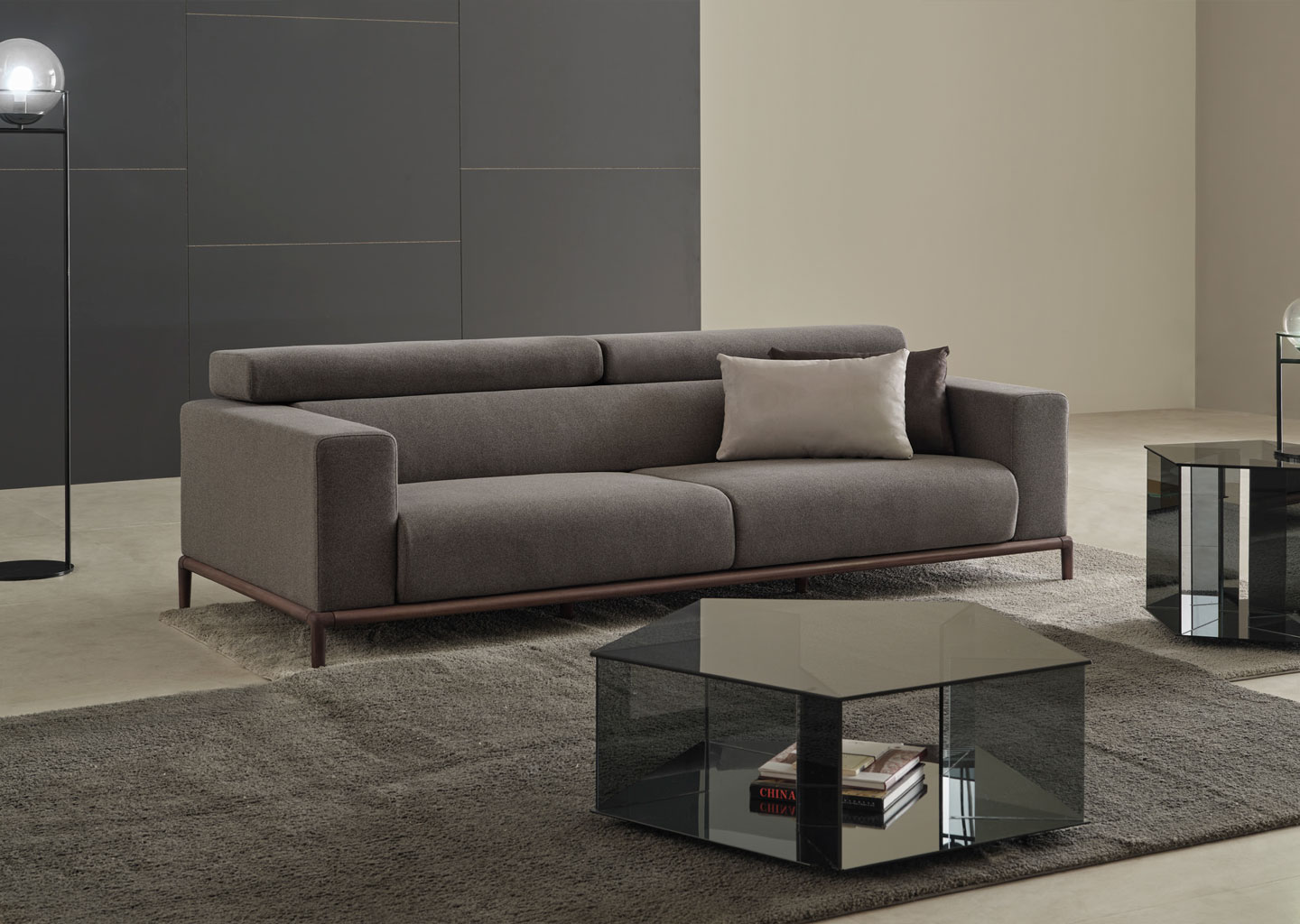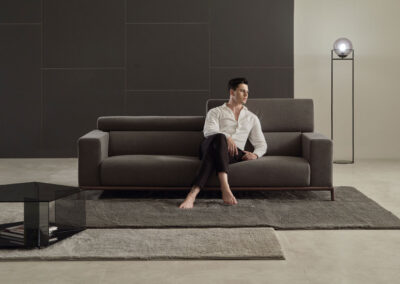 Bold lines and clever functionality. York sofa’s adjustable headrest is designed to fit the user individually even if they are sitting on the same sofa. Elegant wooden legs elevate the strong silhouette of York, creating a lighter look.